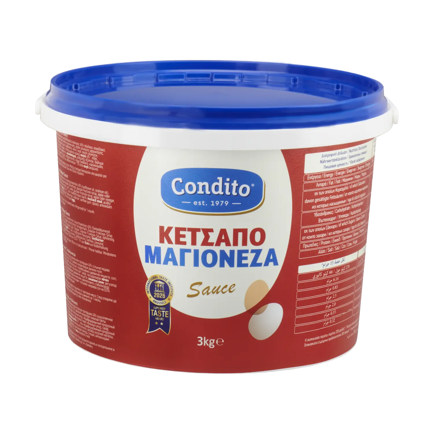 Ο συνδυασμός των κορυφαίων πρώτων υλών της κλασικής Μαγιονέζας Condito, “απογειώνει” γευστικά κάθε πιάτο! Kρεμμώδη υφή, με γεύση γλυκόξινη και διακριτή την γεύση της μουστάρδας και του αυγού. Χρησιμοποιείται και σε πολλούς συνδυασμούς σαν βάση: για πεντανόστιμες sauces και dressings, αλλά και σε γλυκά.